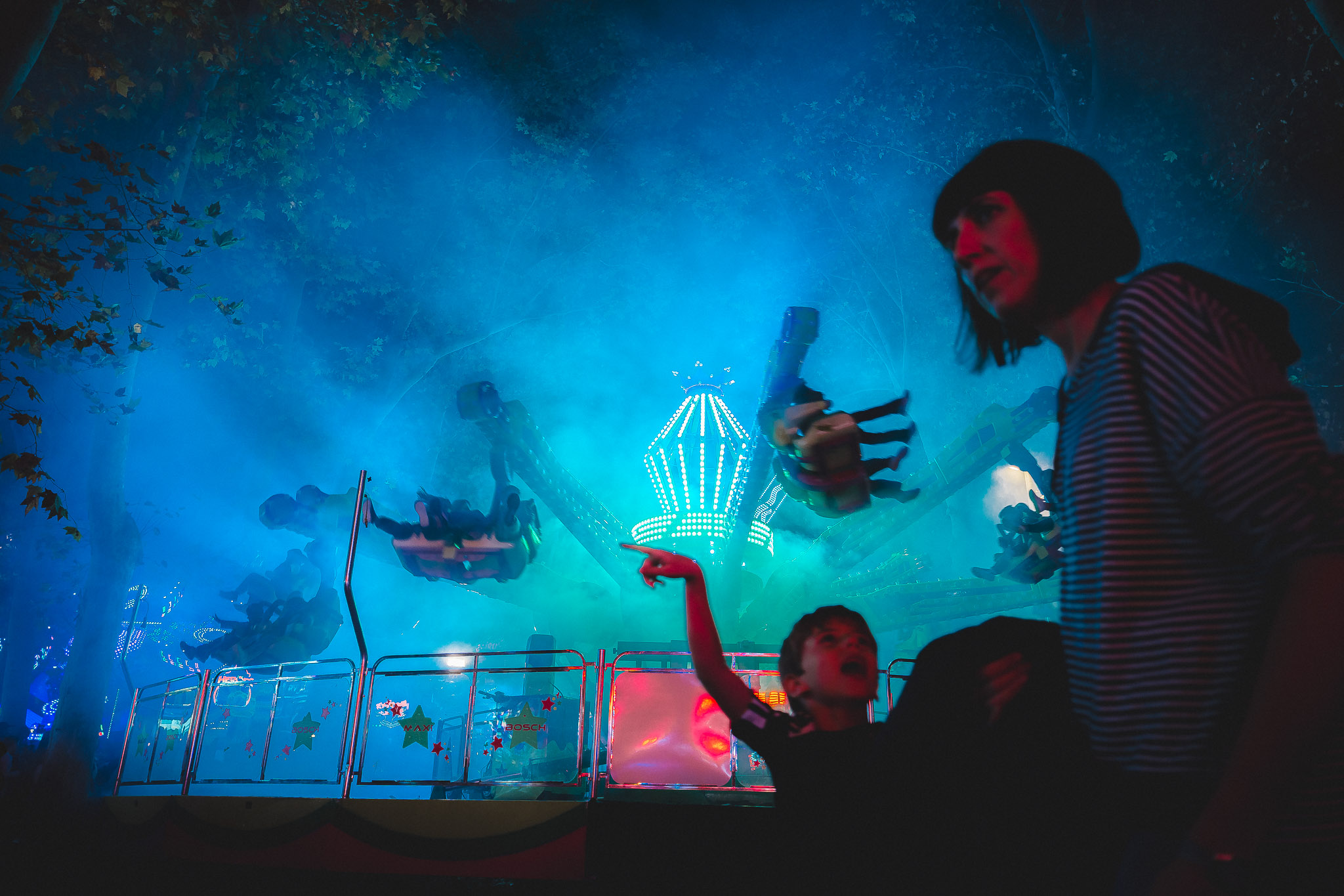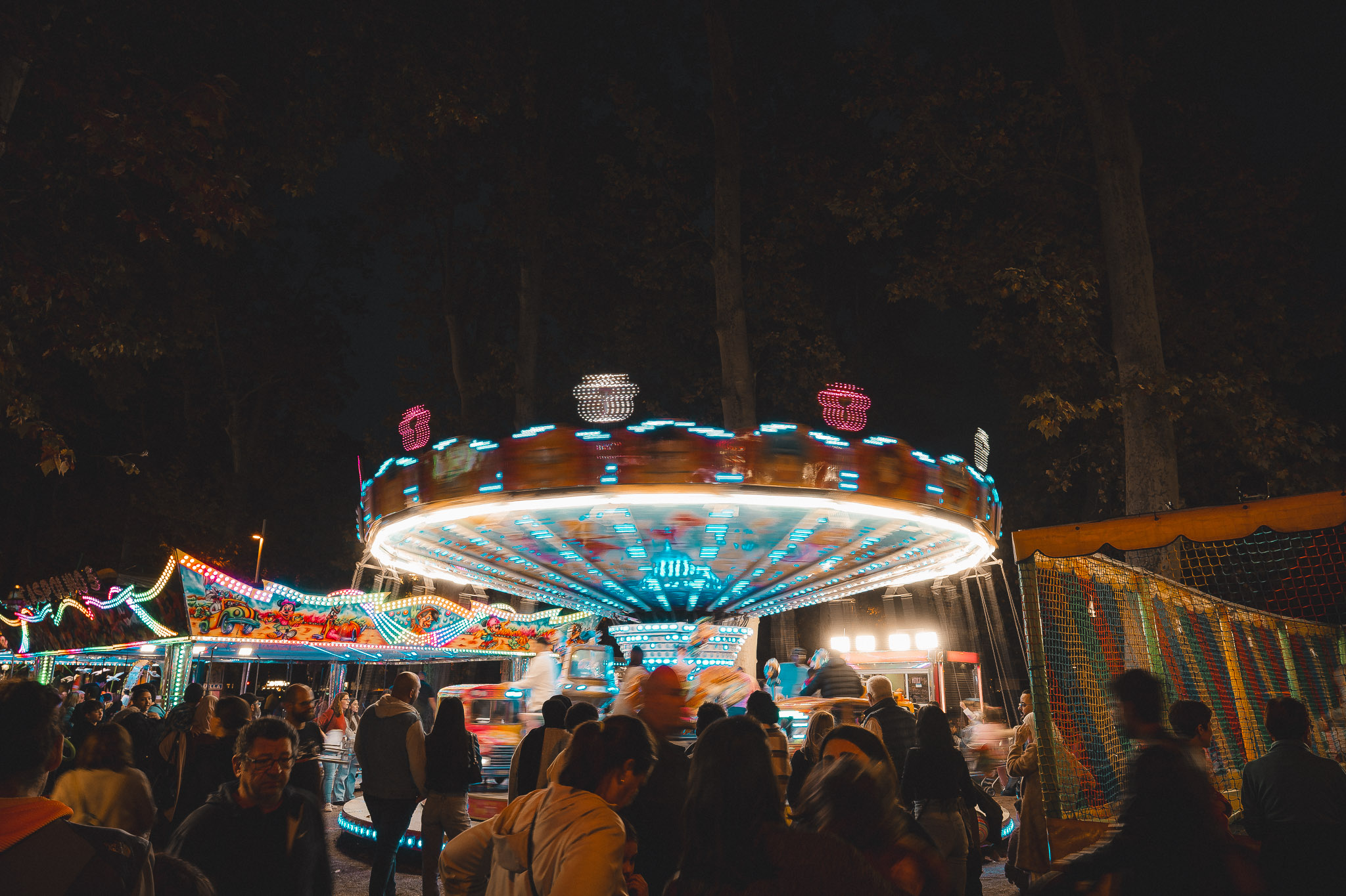 El reportatge combina fotografia d’esdeveniments i fotografia nocturna per mostrar la potència lumínica i el contrast entre la foscor del cel i el color viu de les atraccions. L’ús del moviment, el desenfoc controlat i els enquadraments dinàmics permeten representar el ritme frenètic del recinte firal. Cada imatge està pensada per mantenir l’autenticitat, sense artificis, mostrant la interacció espontània entre llum i gent, la clau en la creació d’un reportatge fotogràfic Fires de Girona únic.